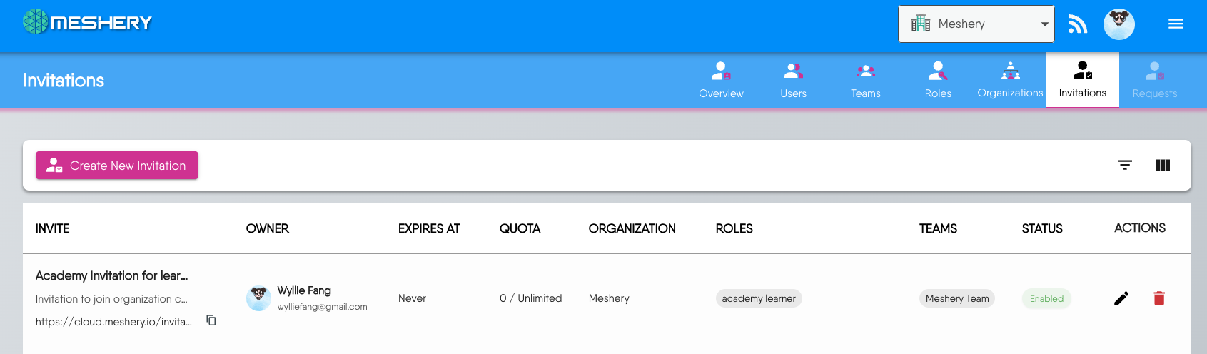 • Automatic Role Assignment: Users who accept the invitation automatically receive the “Academy Learner” role